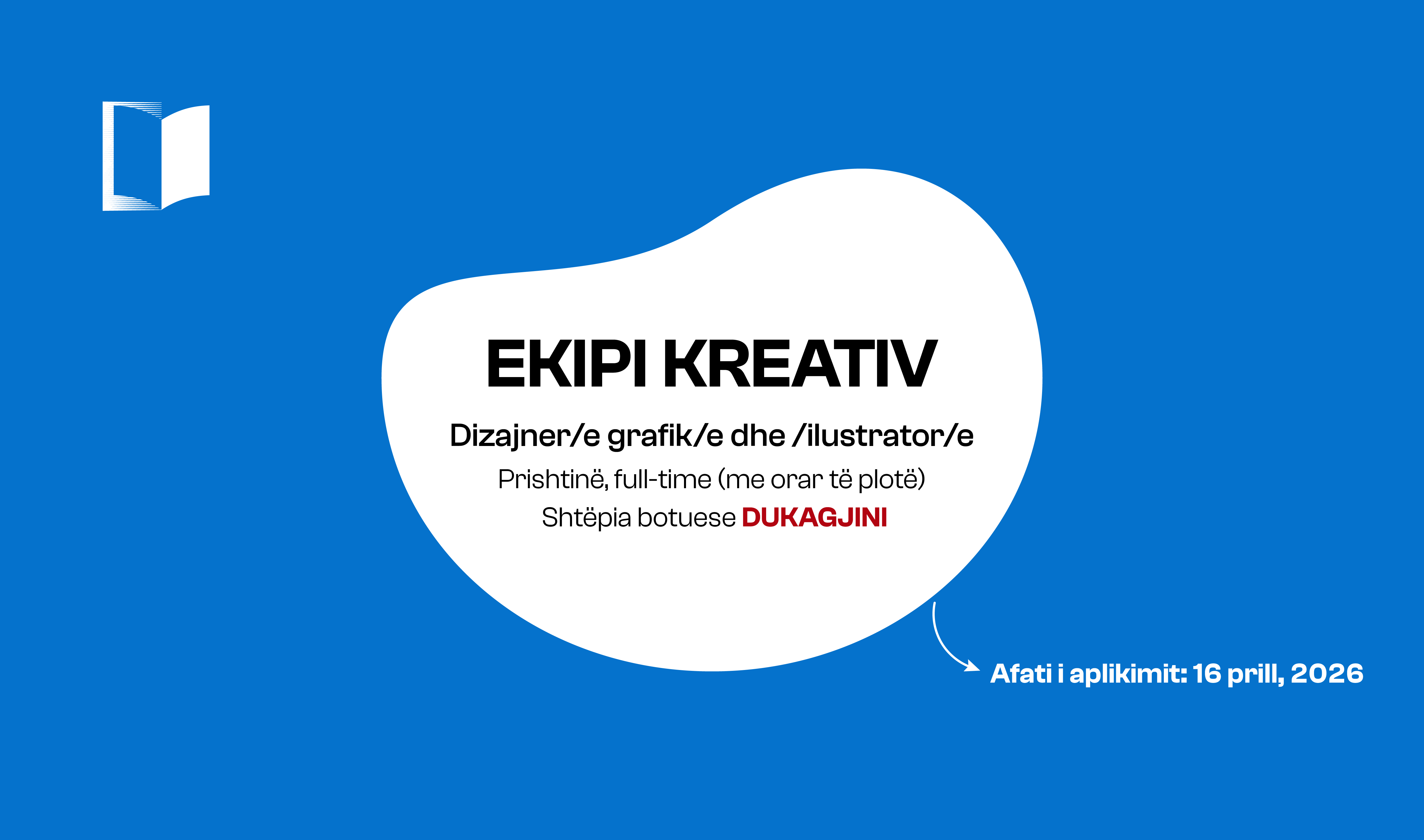 Po kërkojmë një dizajner/e grafik/e me përvojë pune, kreativ/e, i/e angazhuar në artin vizual dhe në dizajn. Nëse dëshiron të punosh në projekte botuese dhe të kontribuosh në zhvillimin e mëtejshëm të ekipit tonë kreativ, kjo është mundësia e duhur për ty! Kandidati/ja duhet të ketë interes për artin, letërsinë, aftësi të shkëlqyera komunikimi dhe përvojë të dëshmuar në këtë fushë.